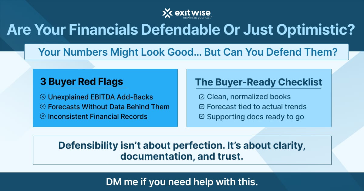 Founders might have strong EBITDA but no add-back documentation. Their revenue growth looks great on paper, but it isn’t mapped to recurring customers. Or they have forecasts that are optimistic but aren't rooted in historical patterns.